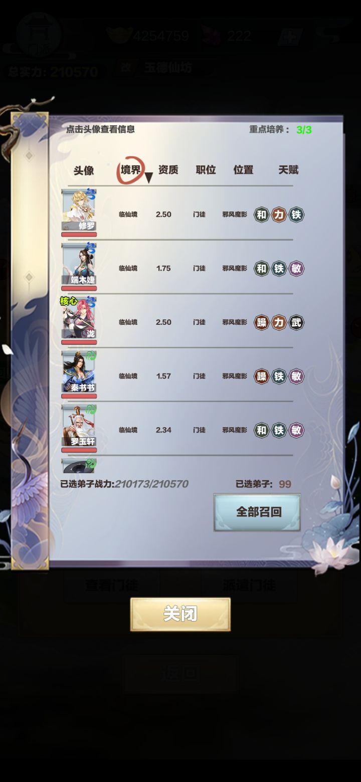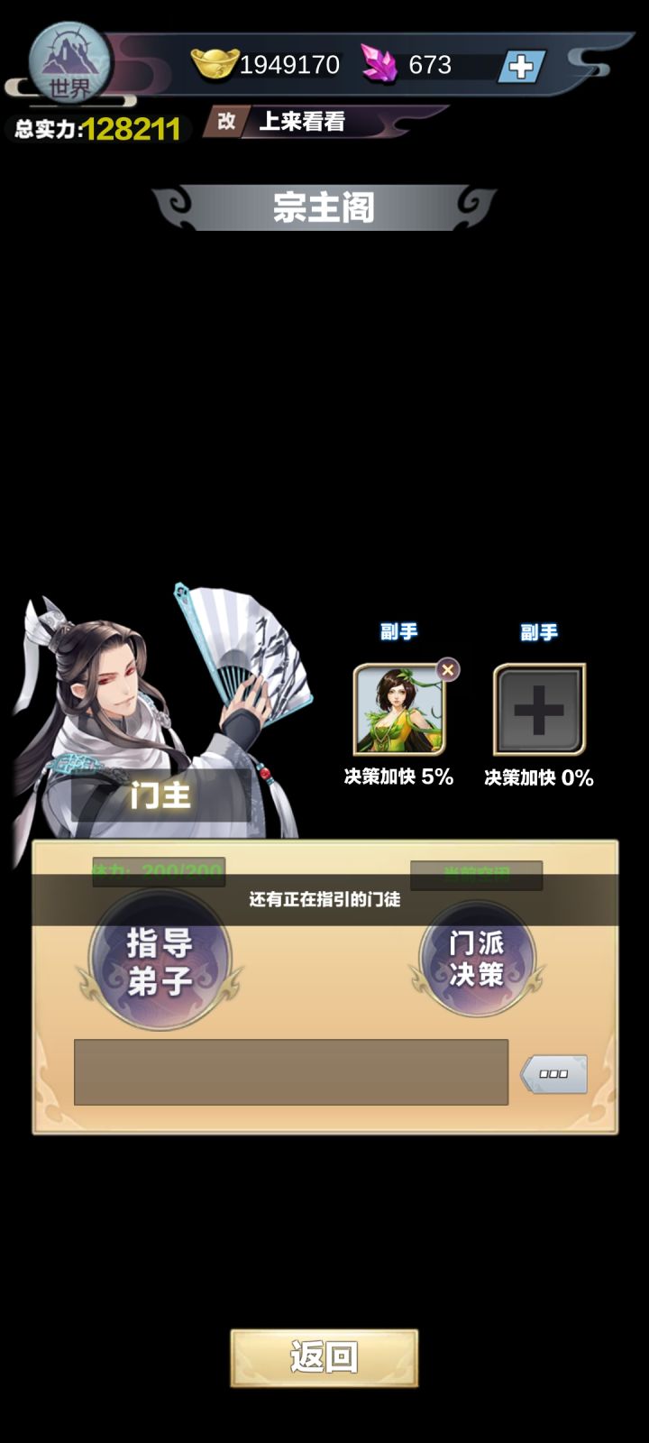 我指导了一个快要死了,可是马上能晋升的弟子,结果还是弟子先死了,现在指导弟子用不了了,总是提示指导中,门主体力已满,希望解决