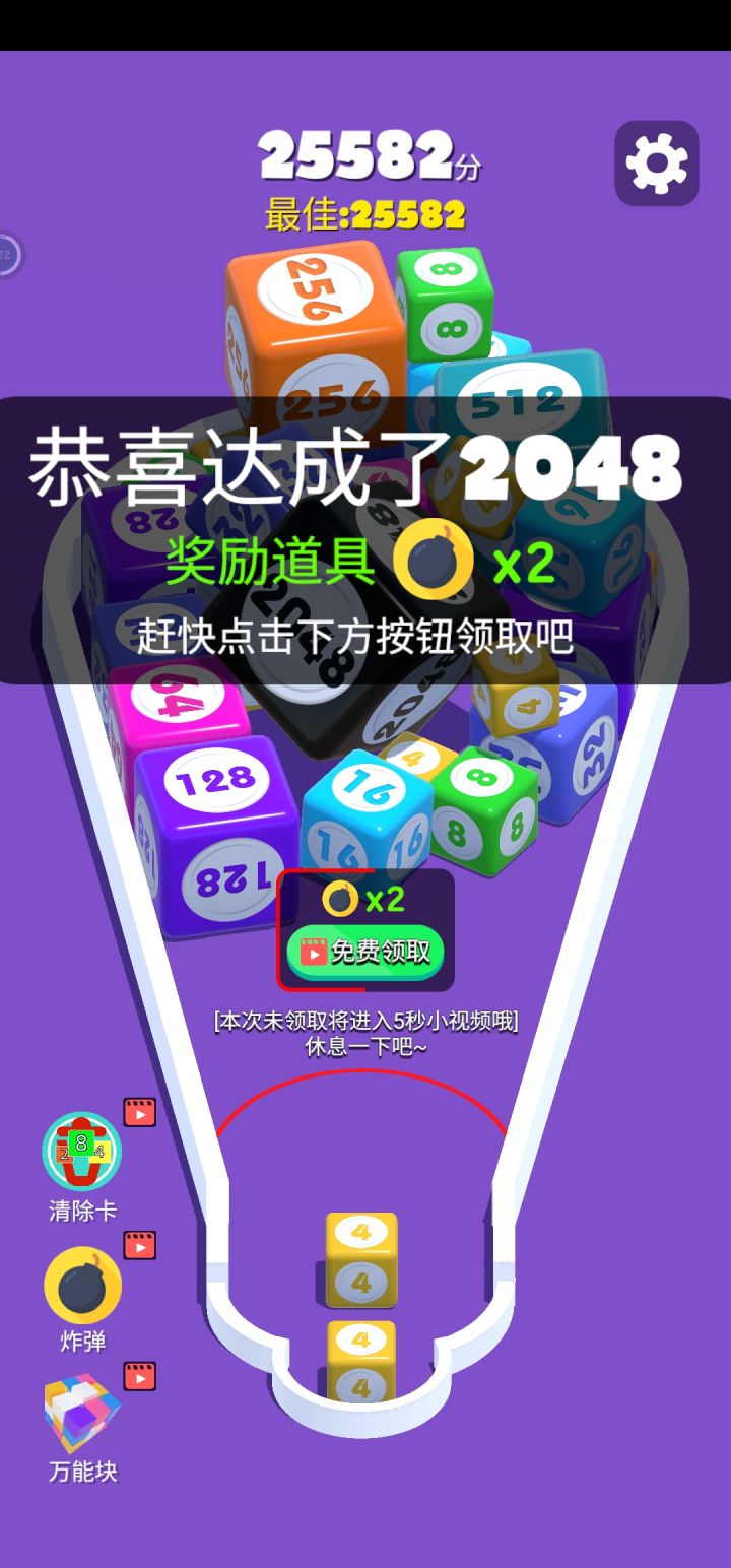 还凑合吧 因为合成之后方块乱飞,但是你的方块只能打地板,高层的方块就没法利用,纯看命。基本不可能有什么谋划,玩起来就看运气得了。第一次玩20来分钟2048,因为砖块合成后大概率会飞到上层去摞起来,整体没什么难度,玩到红线是28分钟,应该不会玩第二次。想法不错,但3d之后要考虑的因素就太多了,制作组加油吧