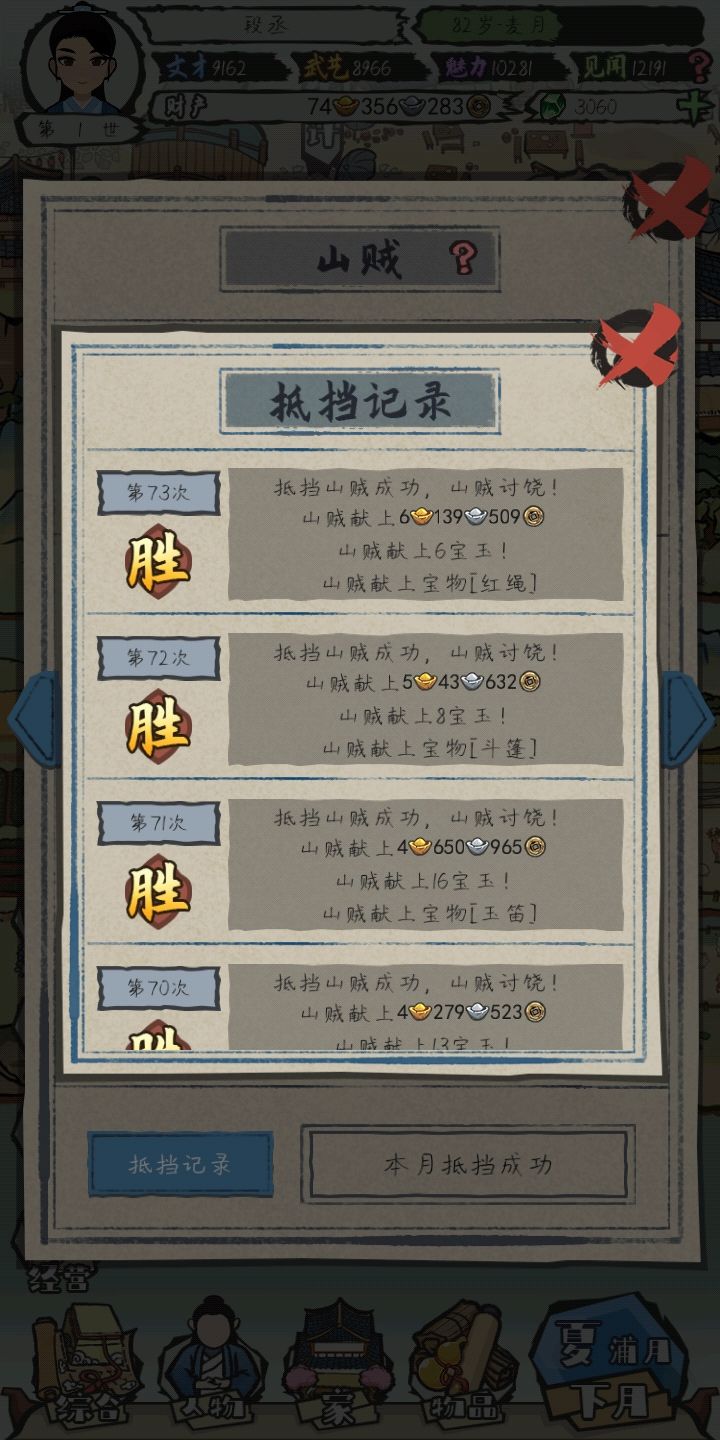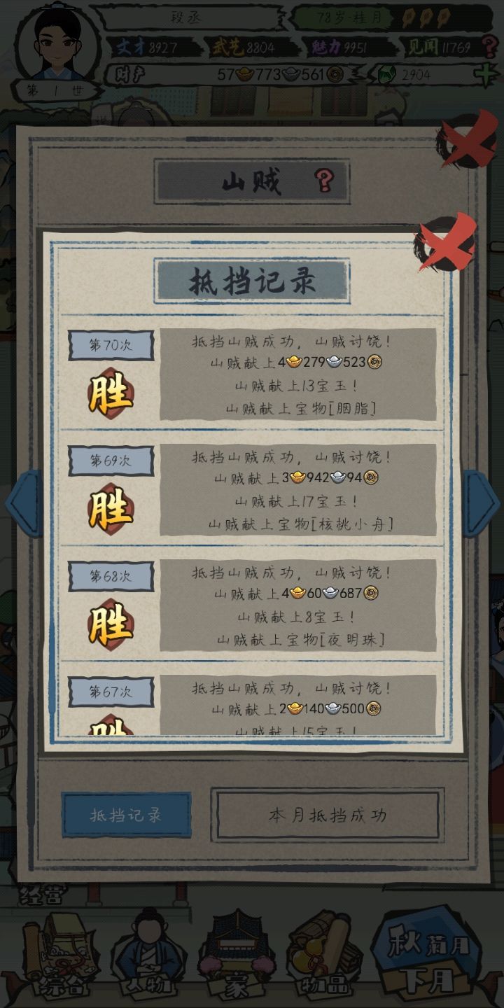 前期讨好刘冬梅得了份跑堂的差事,200文钱美滋滋!讨好刘强风能得个信差的工作还有史大叔这几npc我都是重点关注的,这几个npc这里能买鱼鸡鹅,虽然感觉银子好像没啥用,厨娘那也可惜了,前期没挡住山贼还亏了几十两银子集市这是重要的宝石来源,前期得到的物品可以卖掉换宝石去学文习武,提升自己的文才还有武艺,魅力和见闻是作词和外出提的,还有跟npc搞好关系也能提升属性更夫这里能买到大白鹅丫鬟这里能