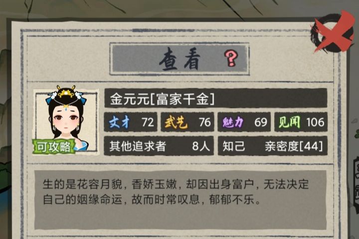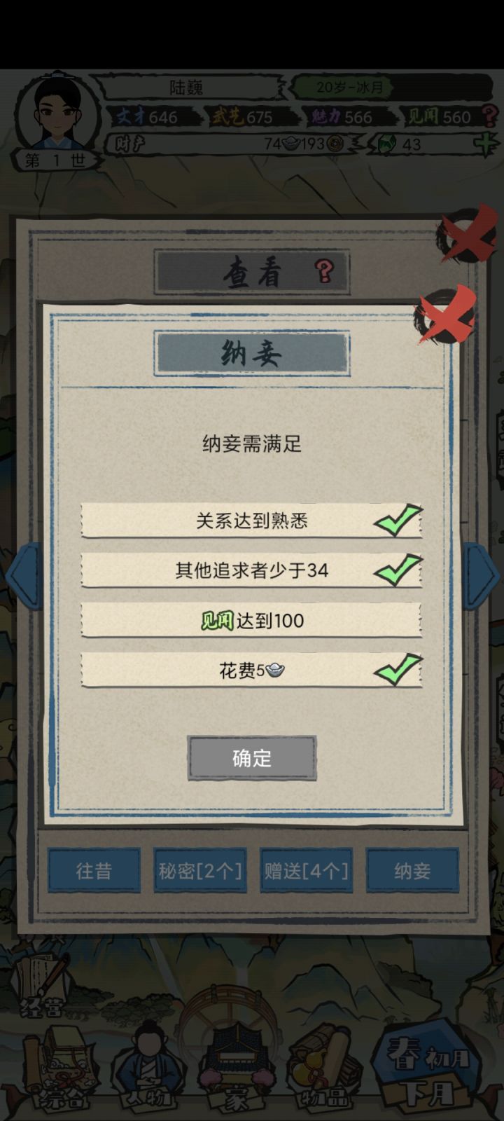 前期讨好刘冬梅得了份跑堂的差事,200文钱美滋滋!讨好刘强风能得个信差的工作还有史大叔这几npc我都是重点关注的,这几个npc这里能买鱼鸡鹅,虽然感觉银子好像没啥用,厨娘那也可惜了,前期没挡住山贼还亏了几十两银子集市这是重要的宝石来源,前期得到的物品可以卖掉换宝石去学文习武,提升自己的文才还有武艺,魅力和见闻是作词和外出提的,还有跟npc搞好关系也能提升属性更夫这里能买到大白鹅丫鬟这里能