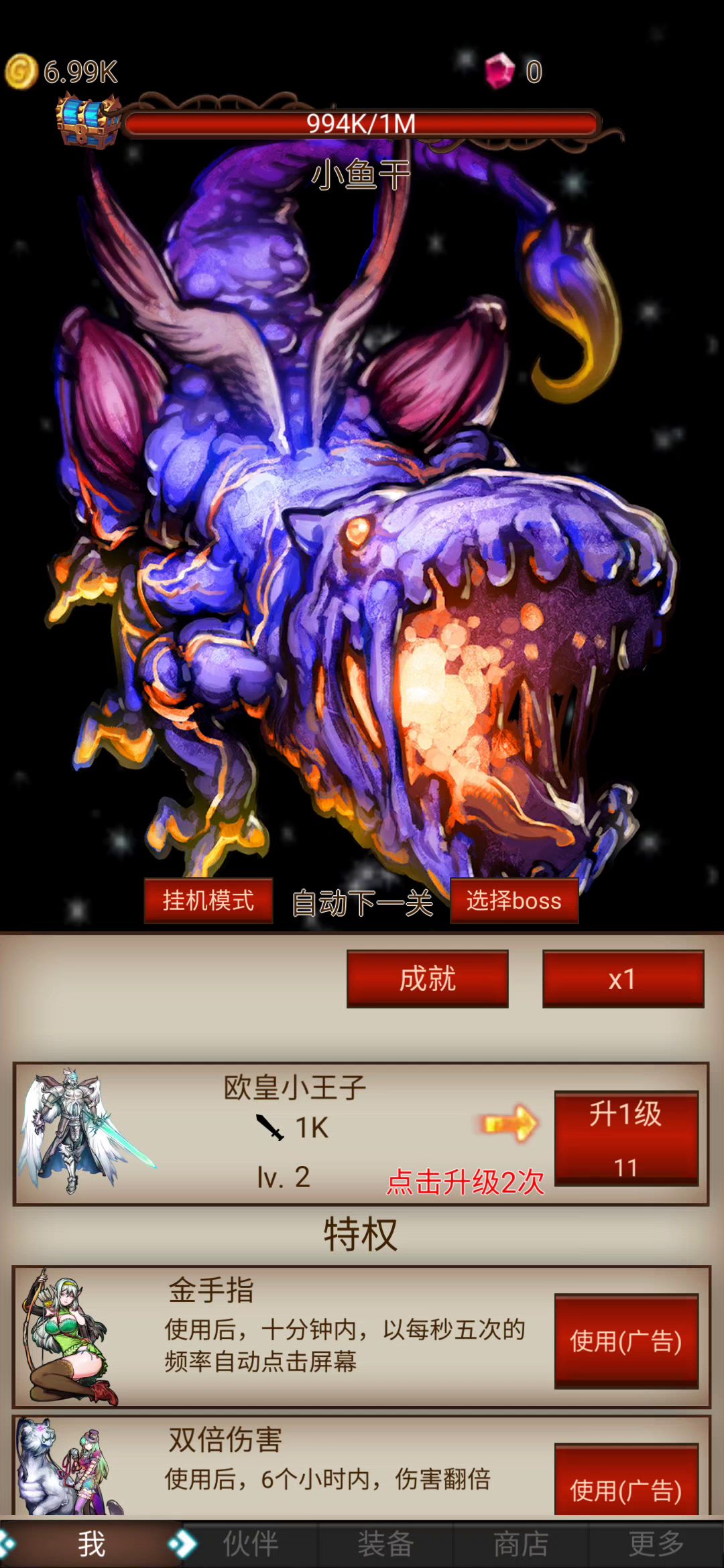 2021年6月1日1、更新61礼包,兑换码输入61换取神装鸡腿5吧,另外广告成就达成50个可以额外领取100W钻石