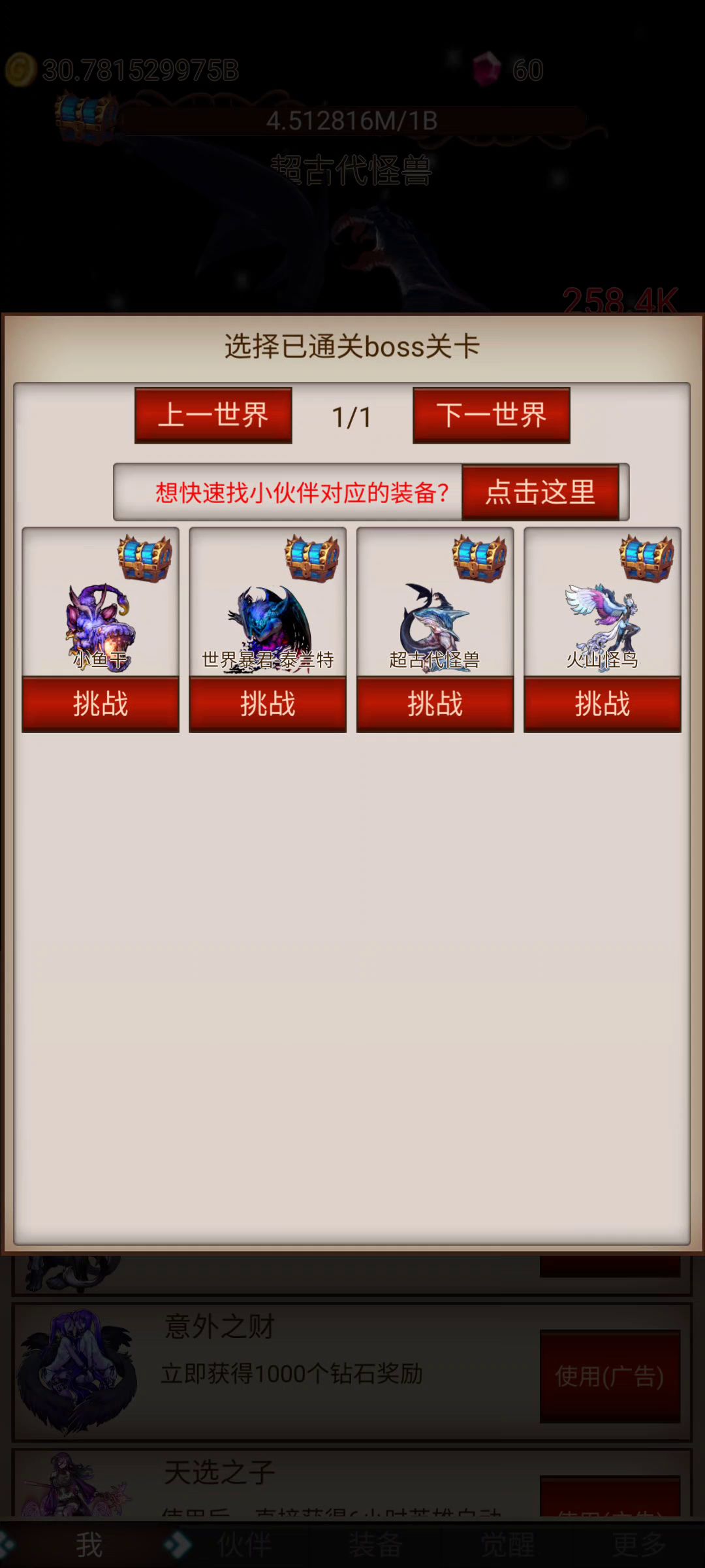 游戏重大改版(新玩家不受影响)由于觉醒功能与宝石功能冲突。觉醒功能不符合打魔王刷装备的核心装备玩法。天赋和宝石功能逐渐丰富,玩家不再打不过boss。所以当初临时决定的觉醒功能,现决定移除此功能。为了弥补觉醒玩家看广告的损失,现决定根据历史觉醒总次数奖励钻石,等额替换为每觉醒一次奖励1200钻石,额外多给200钻石。首次登陆游戏会直接加在总钻石上面。其余部分所有玩家均平等,不会有任何