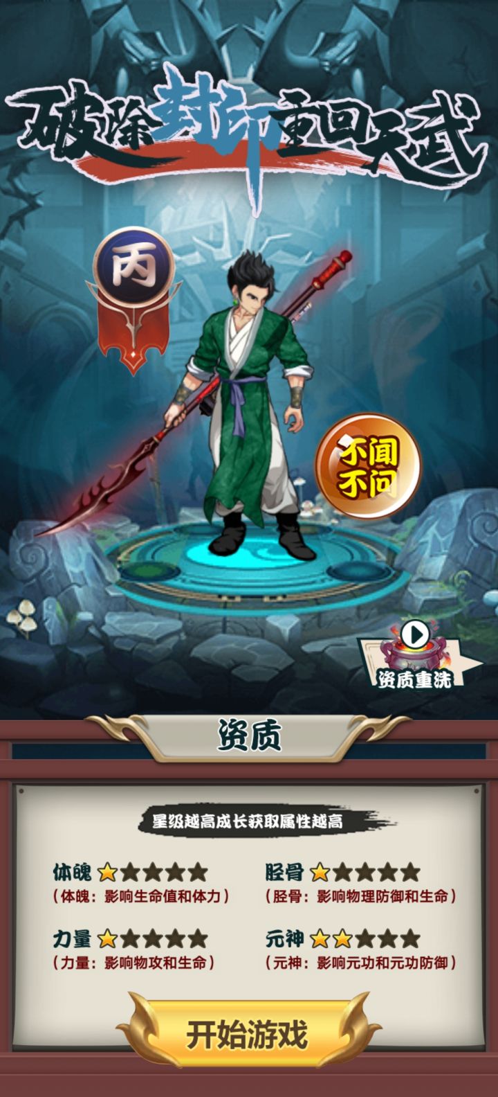 标题:【我爱学功夫】第二阳内容:大家创建角色的时候,记得要资质重洗(需要看30秒左右的广告)洗天赋,洗到自己感觉合适的天赋,还有下面的属性星星也会有变化。