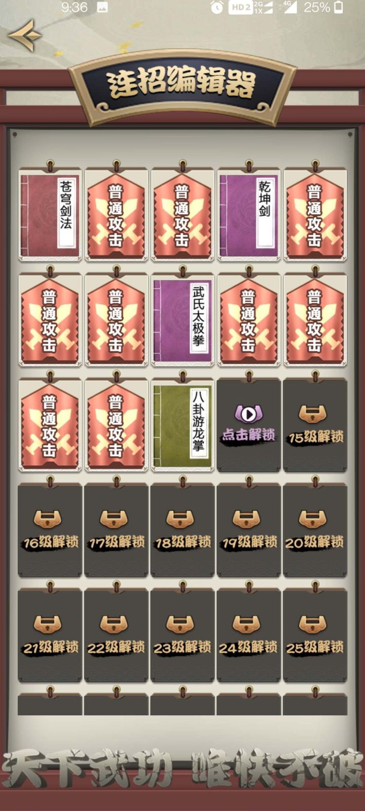 【我爱学功夫】—萧十一郎放置游戏,玩法新颖希望能开发更多玩法,看广告可以有但有点本末倒置了,感觉广告比游戏内容还多。