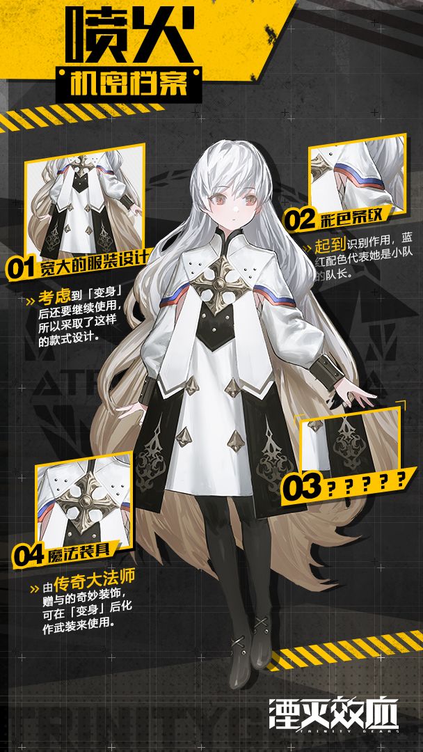 尊敬的司令官,今日新增一份关于喷火的机密档案供您查阅。三一基地情报部〓 机密档案 〓行动代号:喷火标记重点:服装/纹饰/魔法装具待揭秘标记物:03号古老而神秘的■■■■,据传说她们会在不列颠尼亚遭受危机时重新归来。—————— 战术分隔线 ——————关注官方社媒,获取《湮灭效应》最新情报官网链接:官方微博:官方微信:搜索 ymxy163官方B博: 官方Q群: