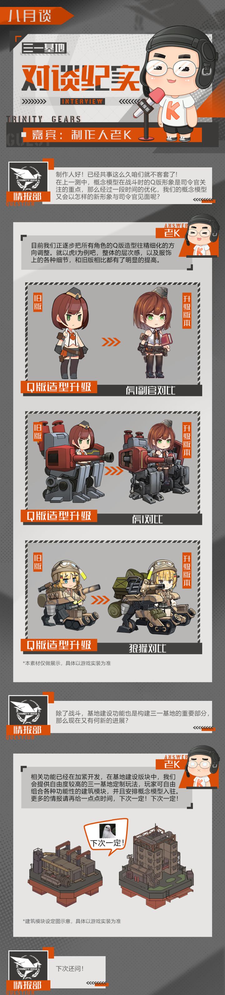 久违的制作人老K对谈时间!三一基地近期发生了哪些变化,司令官关心的剧情、UI这些板块又有了怎样的新进展?答案就在下方的《对谈纪实》中。