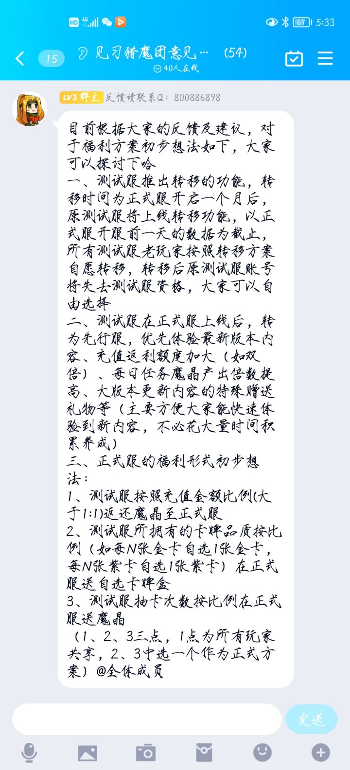 就想问作者,你测试服都不删档了,那个笨蛋会愿意资产➗3转移你正式服呢?你觉得你的奖励很诱惑?皮肤?称号?限定卡牌?和你这样说吧,也就限定卡牌比较吸引人,其他的压根不吸引人,也不知道你统计过测试服抽奖次数么,有多少人能拿到限定卡牌,如果拿不到,谁乐意转正式服?明白人都不会转,当然官方你就打着正式服的名号招揽傻瓜去,世界上也有傻瓜,都是玩,测试服如果不删档,反正也是一直单机,在我眼里和都可以叫1区2区了。