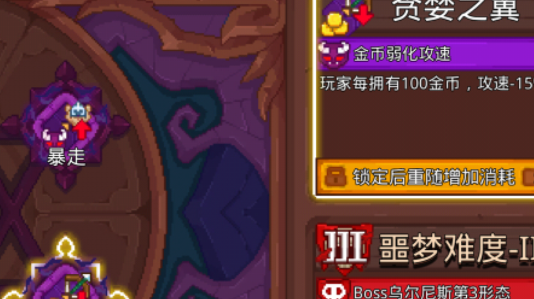 还没通噩梦3的同学趁现在赶紧的 慢攻速武器-150%攻速即可达到视频中的效果,其他武器要求更高的减攻速 负面效果选贪婪之翼。恶魔护臂与诅咒装备都是减攻速的手段