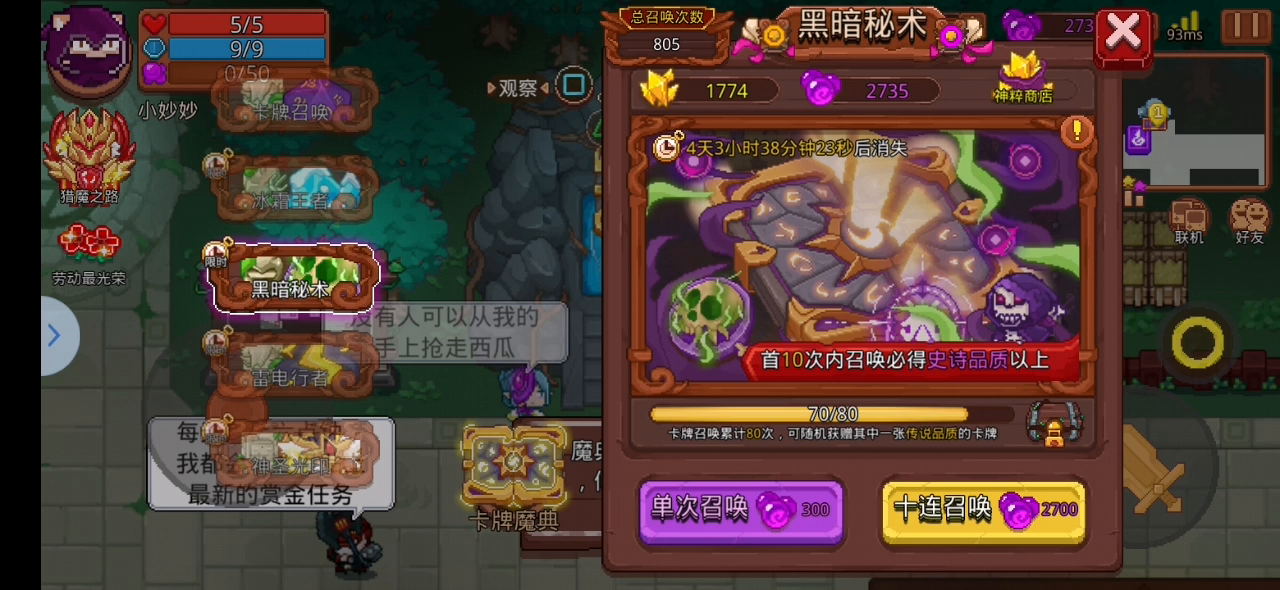 好久没玩锤子,今天心血来潮发现我用锤子,不论是推图还是打boss好像都不比杜内慢→_→难道我竟是手残党……