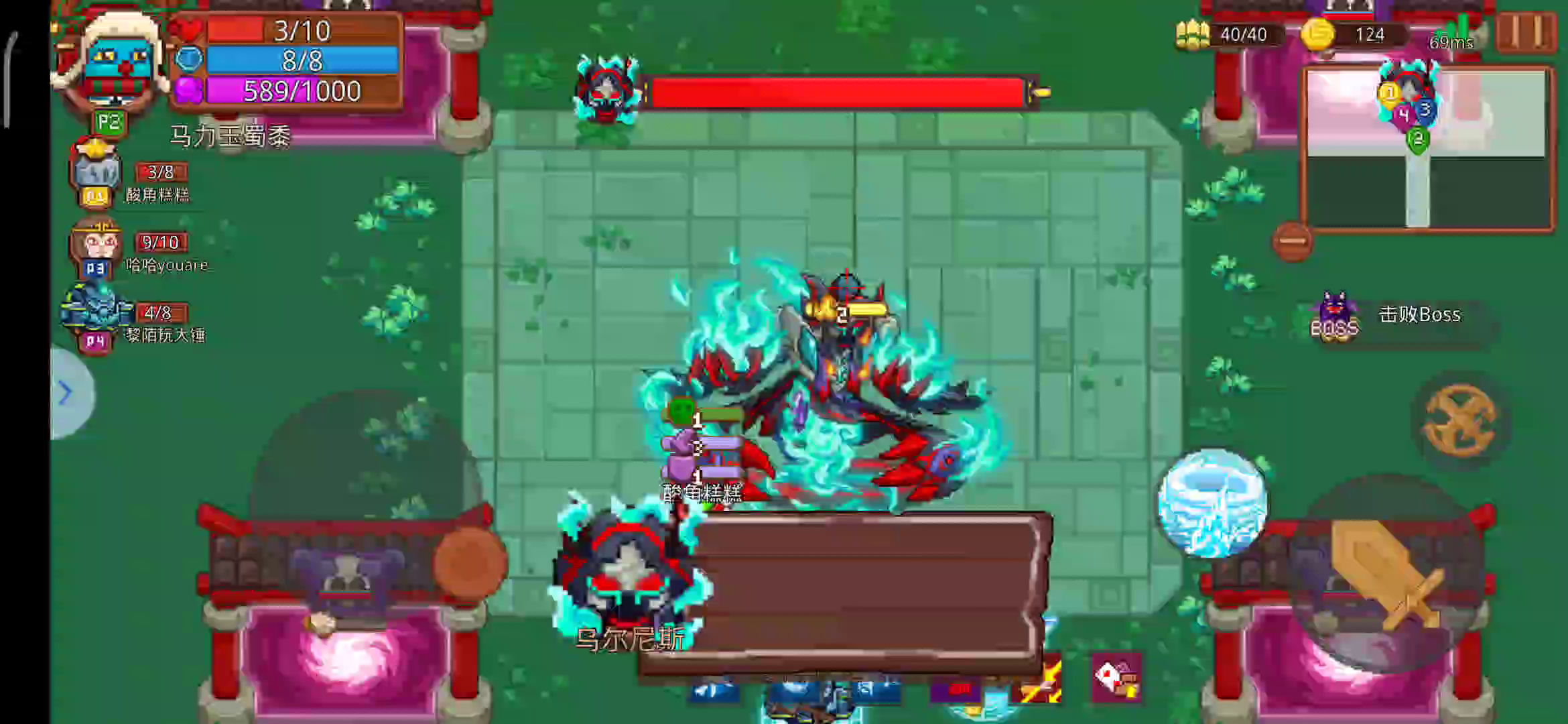 运气不好,我们没有“空空如也”恶魔因子,可是宝箱掉的很少,选的又是魔晶路线,所以大家都没什么装备。加上大佬没换上秒boss卡套,之前被 鸟人 虐全队,至少人均死过一次了,所以打的谨慎——不得不😂😂。。好久没这么打通关了,也不错,有点意思。