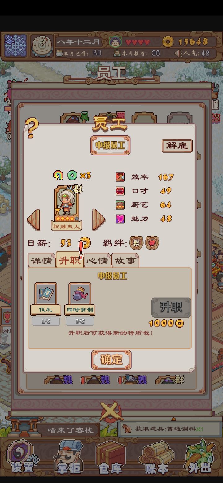 4英杰分别是阿蒙、周郎、陆逊和鲁小肃效果呢是加成40点厨艺,小编并没有把周郎和阿蒙放进厨房是因为,小乔大乔这两个角色四星效果不说,天赋基本自刷都有什么秀色可餐或者一些其他的厨艺加成,在对比之下小编就把大小乔两姐妹放进厨房,四人总和起来大概厨艺为560点左右。