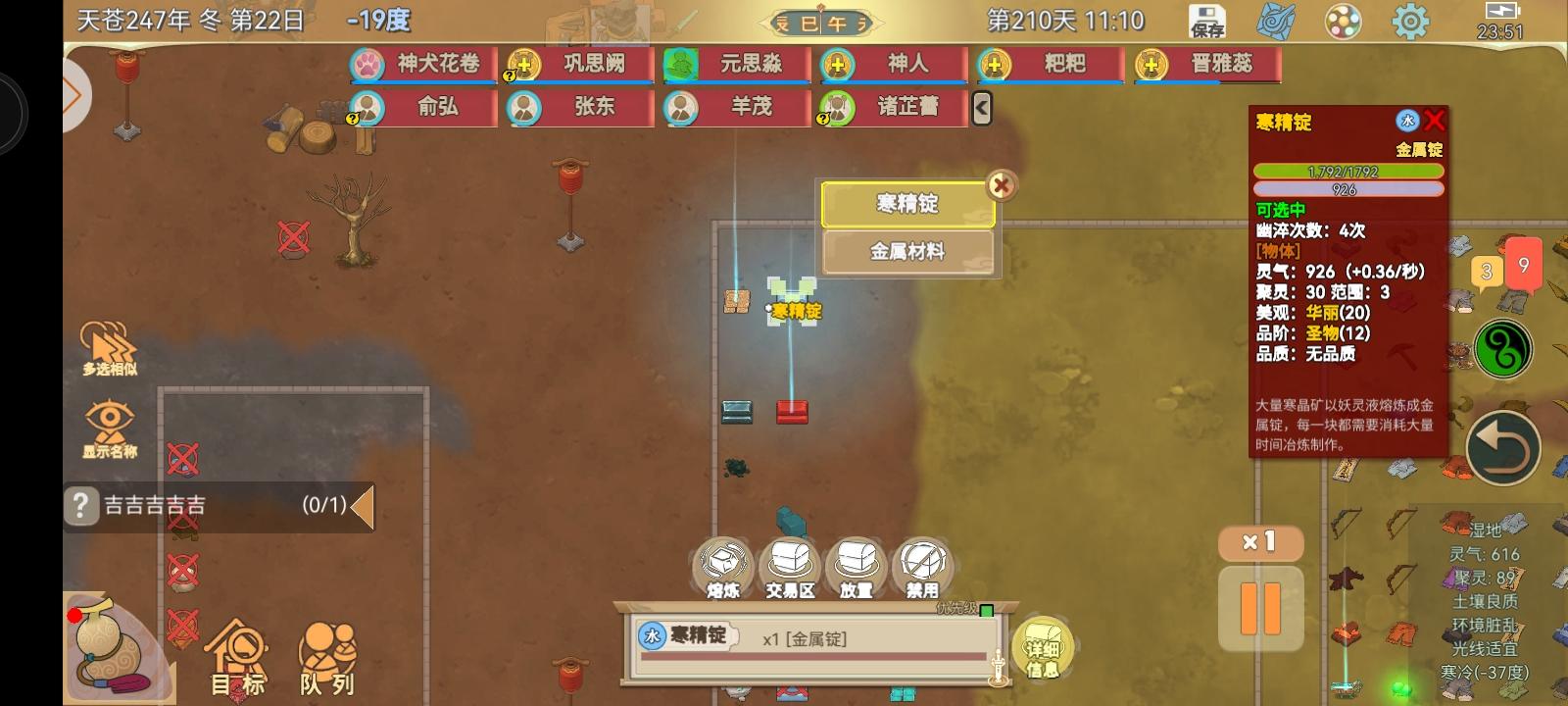 一:万灵阵:地图左下角2×2画仓库装灵木料,派个没门入定封死,站在左边第二格装备灵木料(理论可以无限叠加,存档读档地皮灵气立刻回满。) 注:全选禁用,不然会被小人搬走过乾坤界收回。 二:卡身体流失:小人带了玄牝珠去铜铃山驻扎,在小人还没出去的时候打开他的背包点玄牝珠,等小人到位吃玄牝珠,提示小人回来,再回来之前保存,读档小人身体没了但是不会死,可以吃万灵散,紫阳丹配合万灵阵轻轻松松超品丹。(带玄牝