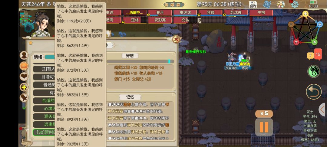 学了之后,心魔降的心情值越来越低(目前已经-480了),吸星大法只能吸凡人回的心情值也才30,中后期心情值直接归零天天迷茫,喂的极乐丹才救回来 话说这个凡人居然吸不死[表情_震惊]