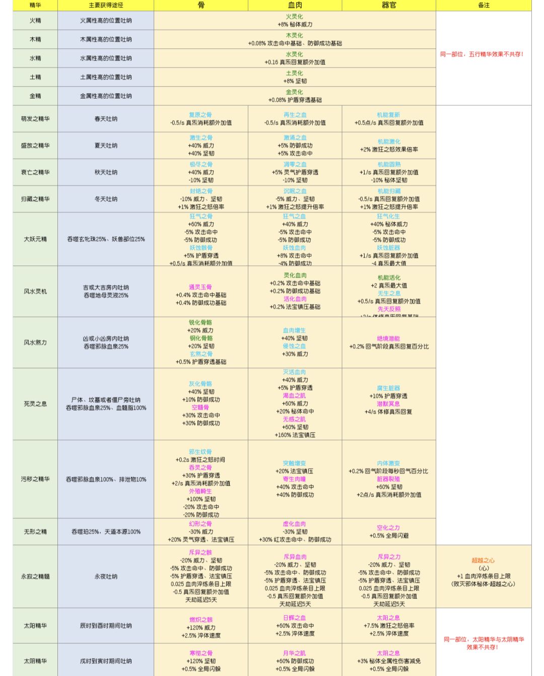脑,百炼满100,器官+2 心,百炼满100,血肉+2 脊椎,百炼满100,骨骼+2 以上为8器官词条,8血肉词条,8骨骼词条。 功法:妖族圣体,秘体:太虚妖识,装备秘体后获得新淬体方式:太虚妖识,淬炼大脑,出橙色词条:太虚之脑,器官额外+1词条上限。 功法:败灭邪体,秘体:超越之心,装备秘体后获得新淬体方式:斥异淬体法,淬炼心脏,出橙色词条:超越之心,血肉额外+1词条上限。 功法:蛮极金身,秘体