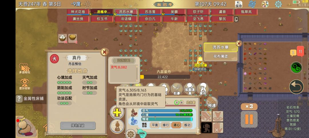 灵气爆发弄懂了一品金丹真的很简单,要点就一个聚灵阵,聚灵阵聚满灵要 5 天,但是我们不可能开局一下子就凑够聚灵阵的材料,所以它一定要放在灵土上,灵土第一天就会自动开始聚灵,聚灵阵爆发灵气后(爆发灵气后除了中心点其他材料的聚灵值都会清零)只要存读档一下聚灵值会直接回满,灵木阵爆发上限理论上是 3000+的,爆发后灵气不够存读档在爆发一下就好了。 爆发也有讲究 东南西北四个点位同时爆发,然后其他点位