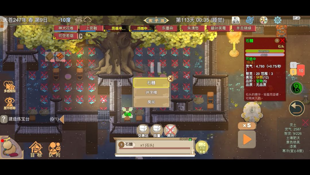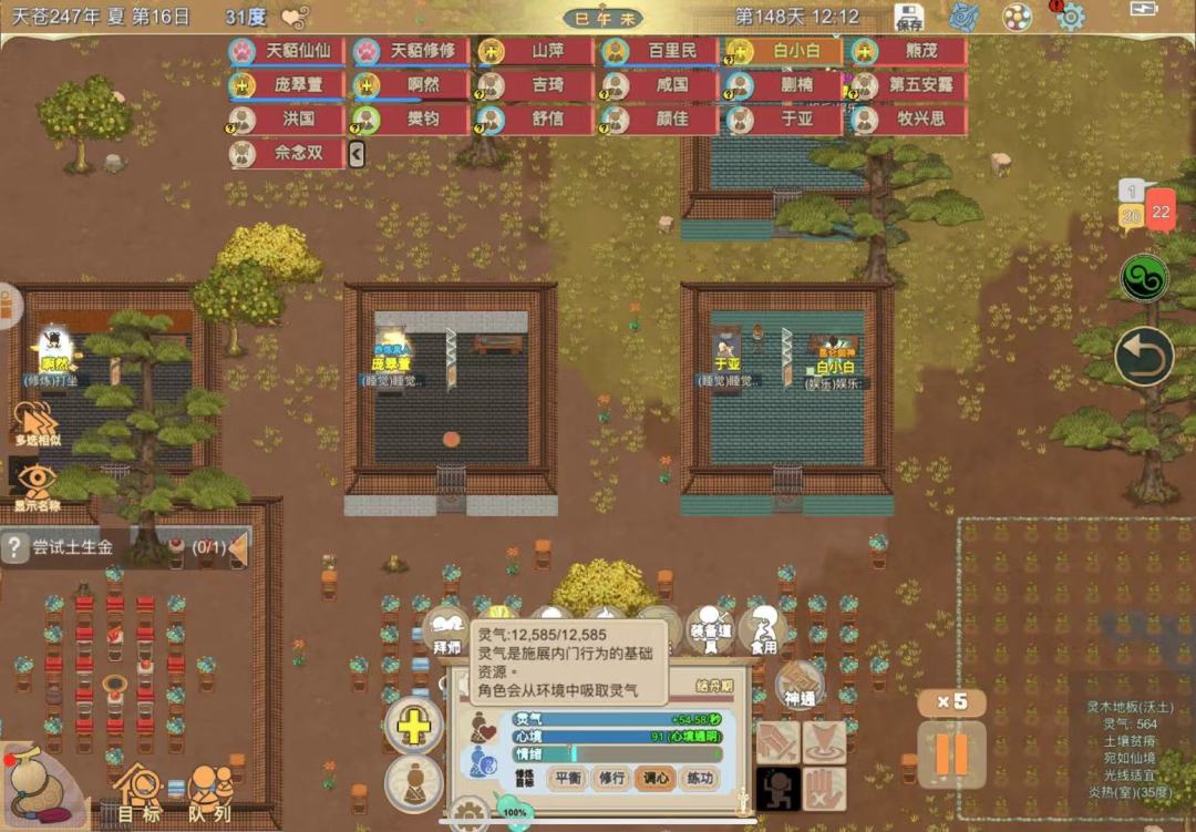 1,开局快速一品金丹,当然因为很快所以是刚好卡在一品金丹灵气很低,自制满属性轮回者功法选择三阳峰+药庐,创建地图随便蕴灵树那些有没有都无所谓,有个巨银树就行。 2.开局两个小人各吃两株药赤参和紫芝,晋级内门,其他小人开图找巨银树和灵木树,砍伐灵木树,制作木材然后建三个藏经阁。 3.小人派出去,一个先去小凉山,把棉花和石髓(最少40个)拿回来制作蒲团,另一个可以去月轮山,进去之后右下角拜山解锁太一遗