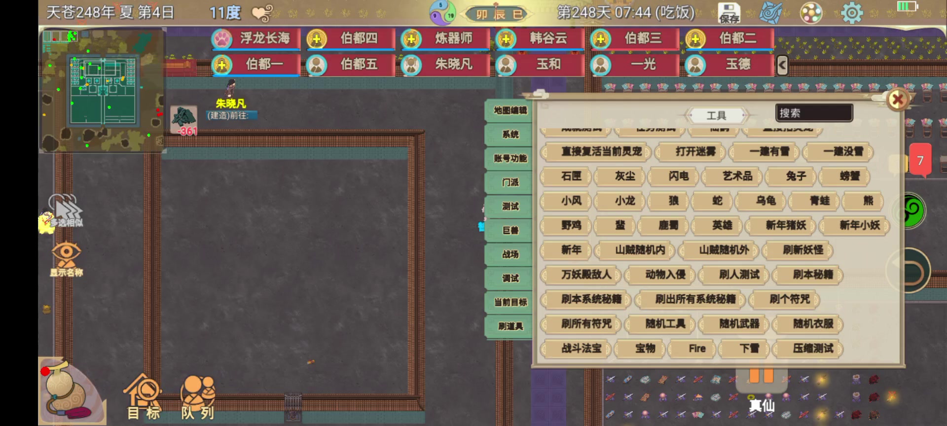 1、开局蜚和鹿蜀记得选一个,进游戏第一天升内门把它杀了拿玄牝珠,可以拿来杀神秘人和前面那个结丹期沉睡的妖兽。2、记得开局建个水井,避免被渴死3、开局把上古巨兽关了再创建地图,不然三百天左右会来蛟龙4、如果不想被妖兽围攻,记得把全图动物杀了,不然会随机进化妖兽5、缺灵石可以先种小麦,三十来天左右可以换大概三五千灵石,如果嫌小麦太慢,在饿不死人的情况下,派几个人去有木头的地方历练,然后把弄木头