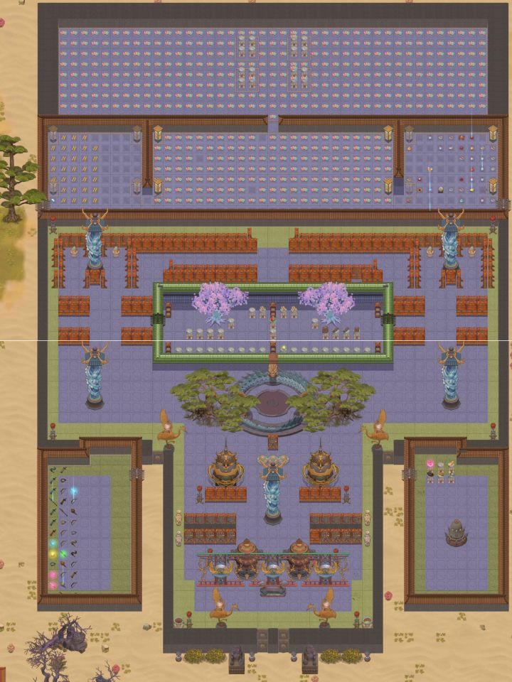 上一期豪华宗门蓝图材料过于豪华,导致建造困难对于刚开局很不友好。而且全部建造完,对游戏流程还是有一些影响滴。这一期蓝图主打的一个开局即可建造,除了法座需要门派等级获取,其它均在1级门派就有门派总大小仅54*48导出蓝图数量只有9块,加载贼快考虑开局建造需求推荐优先建造1-1和1-3两块蓝图即可如图中间间隔14块小方格另外赠送一块神修突破房间获取方式和上期一样加群,带上点赞 关注