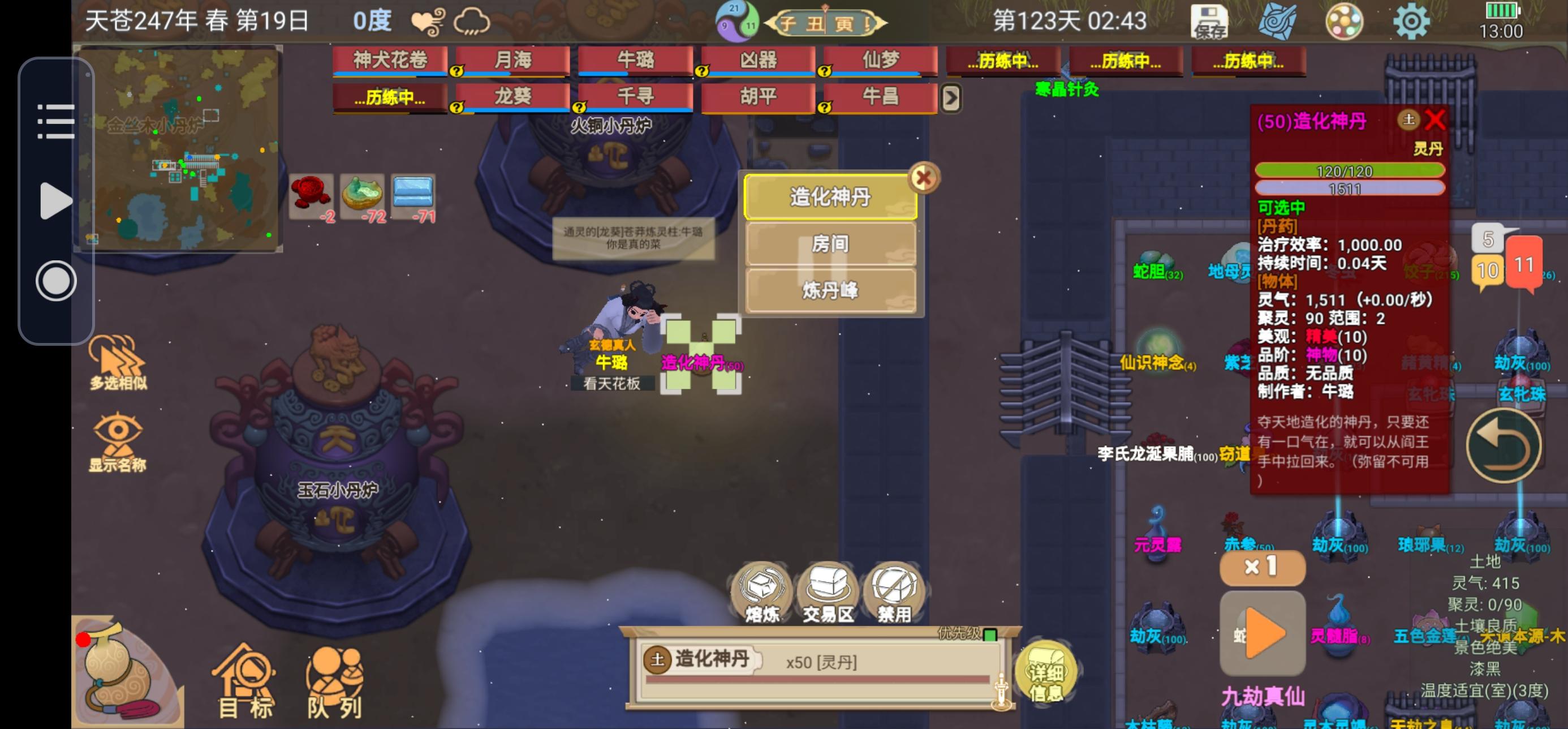 我这一炉50颗造化神丹,这是bug吗怎么一炉会这么多,终于知道造化神丹卖给其他门派咋这么不值钱了