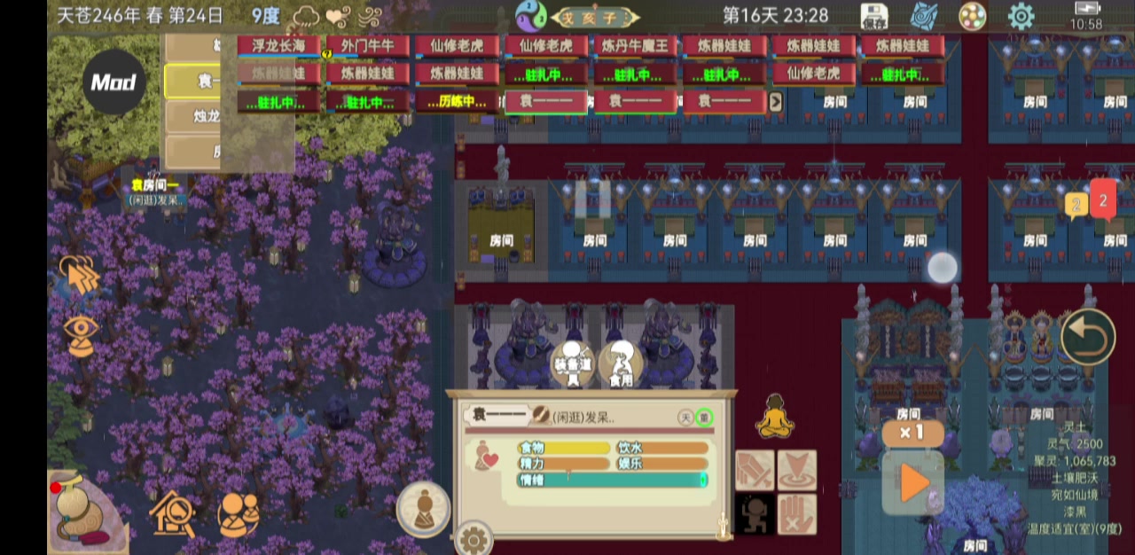 挑衅门派就不用祭妖了,尸体太多很卡。天帝还是需要每日五倍速练宝查看特效。能历练的都去【紫霄宗】挑衅和偷东西,要注意别被打了,金丹期就不要偷东西了,直接拜访山门吧,惹怒就行。山君、天帝继续钓鱼,钓到妖兽杀妖兽,钓到妖修就看功法,有需要的打死,没有就不管他。玉清继续修炼突破,练到元神期或者红尘劫,也派去挑衅门派。北斗寄带上“战斗套装”直接渡劫,先把道行劫和化形劫渡过,然后再渡真仙劫。战斗《