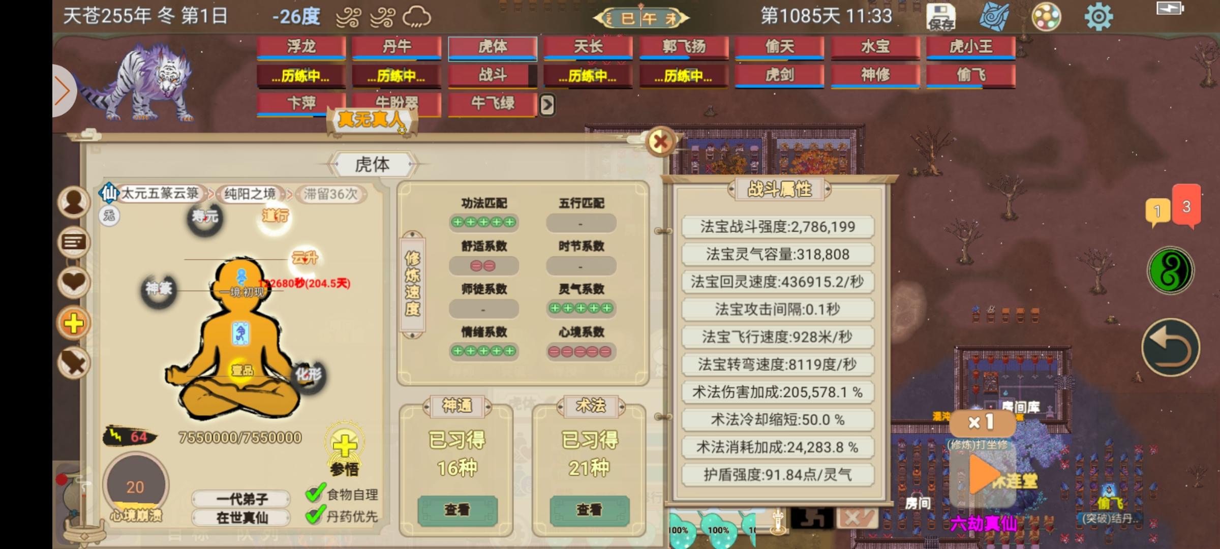 纯阳小人,卡脑袋吃了八个造化玉露和六十多个凝珀丹,能学的技能基本都学了,卡身子紫阳丹,地母灵液之类加灵气最大的都吃满了,结丹用的万灵阵,小人两千五百万灵气感觉已经没有提升空间了,剩下的几个门派打不过了