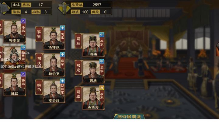 四,猜忌,更换多少功勋的大臣就增加多少猜忌,其他的看界面猜忌情况;减猜忌:家宰能力,每年的辩论赢了清空猜忌,政策,朝堂冲突也会减30(不建议)