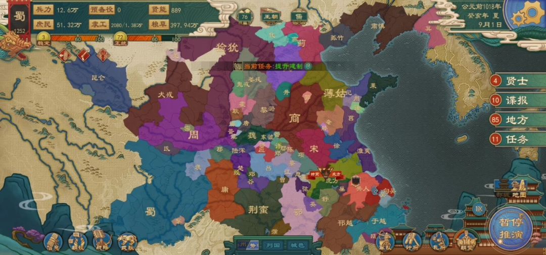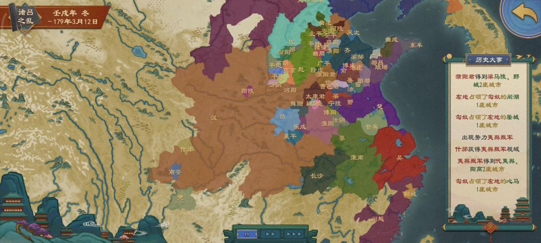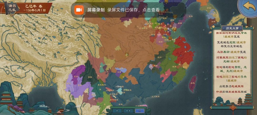 大楚王朝历经近600年完成一统天下。 很遗憾游戏还有很多需要优化,例如:天命所归发布合并天下(卡死)劝进一同等完成成就结束卡死😂