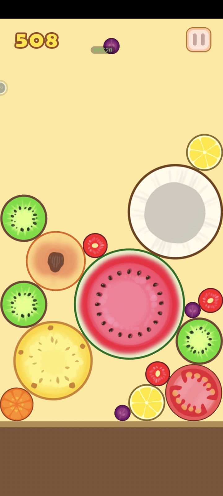 合成大西瓜是一款很有意思的西瓜为题材的完全免费,休闲小游戏。这里不光只有西瓜,芒果,椰子,橘子应有尽有,认识认识水果也不错哦!玩法虽然简单,但是要合成多的大西瓜还是有一定难度,快来试试,看你能合成几个大西瓜。#宝藏游戏安利派对#游戏推荐