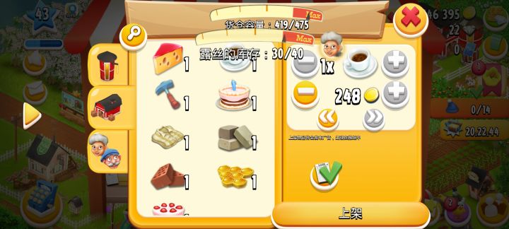 一杯咖啡要三个豆子加个白糖,这几样加起来244做成咖啡,只卖多了4块钱,就是那咖啡机五分钟的加工成本只值4块钱吗,有点不太合理吧。当然,因为目前大家等级不是很高,现在高等级的人少,所以做成咖啡卖比这几样单卖快,所以这一点是优势。但是仅仅这一个优势了