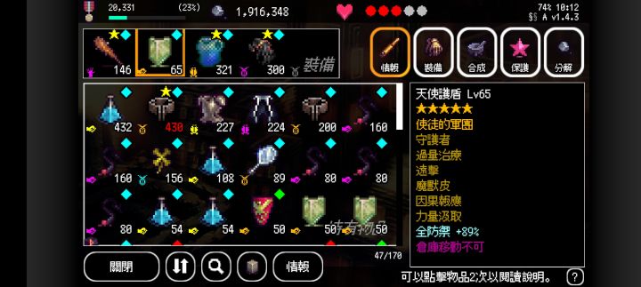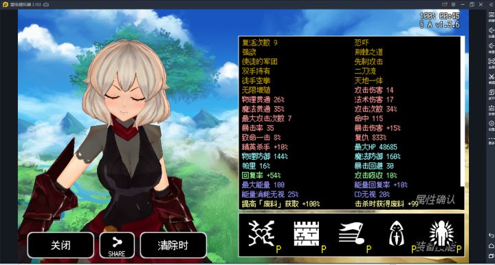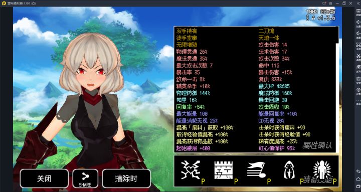 输出:因为之前是堆HP反伤,所以用的是天使+无限增殖流。理论上用黑针等流派也是可以(然而还没凑齐所需属性)。