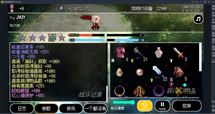 持续性:复活+9,红心保护值+95%,设置为有红心就会继续冒险。这样基本可以无限循环。