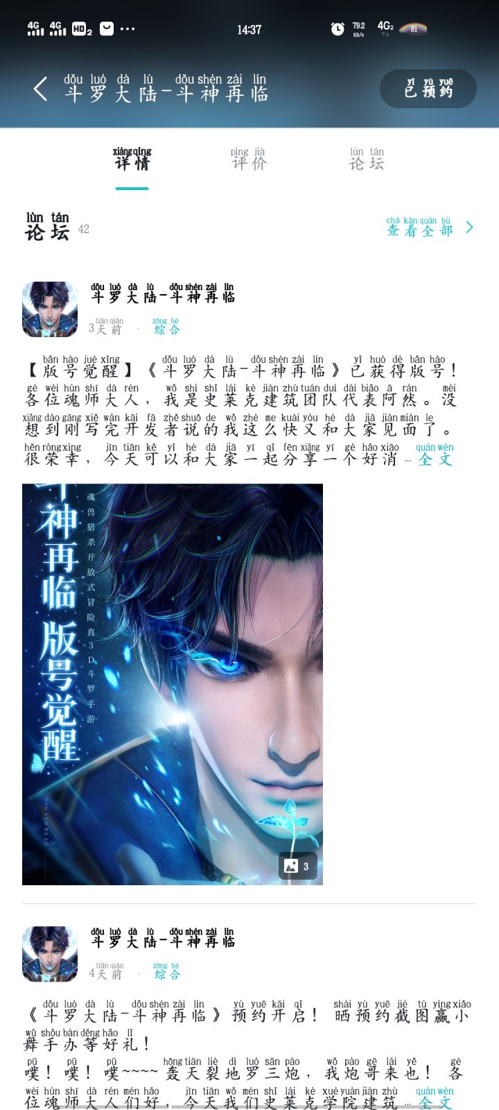 各位亲爱的魂师大人:赢周年社区活动第一弹来啦~~~4月22日12:00~4月27日24:00期间,在本帖内回复,带上各位魂师的昵称、UID以及对斗神再临的祝福,踩中逢1的楼层即可获得本三炮为各位魂师大人准备的奖励哦~(如:1楼、11楼、21楼、31楼、41楼、51楼....以此类推)踩中实物奖励的学员一定要记得私信楼主提供您的收货地址哦~活动时间:4月22日12:00~4月27日24:00活