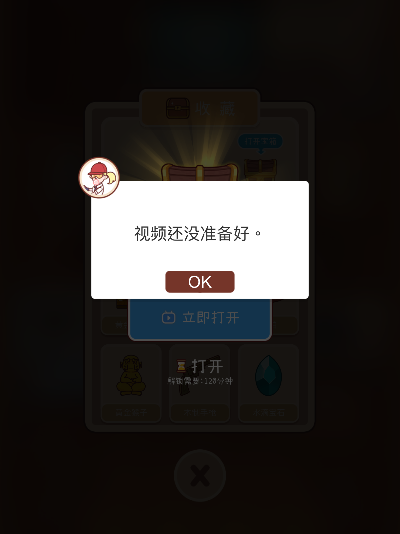 无广告,主动点击观看广告领取奖励会显示视频没有准备好,不影响玩。