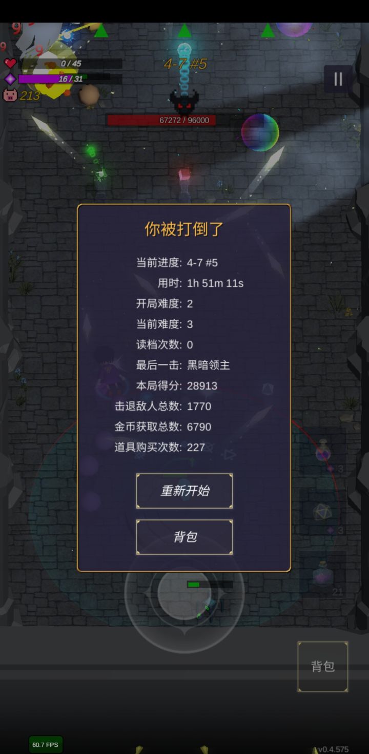 最后总结一下,我最后一把玩了两个小时,到后面boss血量几十万,基本打一波怪需要花费四五分钟,可玩性已经不高了,作者可以在写入一些怪物词条,例如,根据周目数的增加,每次随机增加一个负面词条,玩家也可以选择一个正面词条,这样可以增强随机性和难度值。