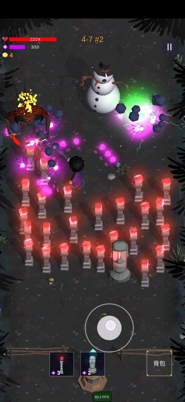 打过4-7三个BOSS。第二周目的怪血量超级厚。死在第二周目的4-7#2买虚空杖多存钱买分裂石头以及子弹持续时间的装备攻速装移速直接不要。血量堆上来了就能随便玩了。