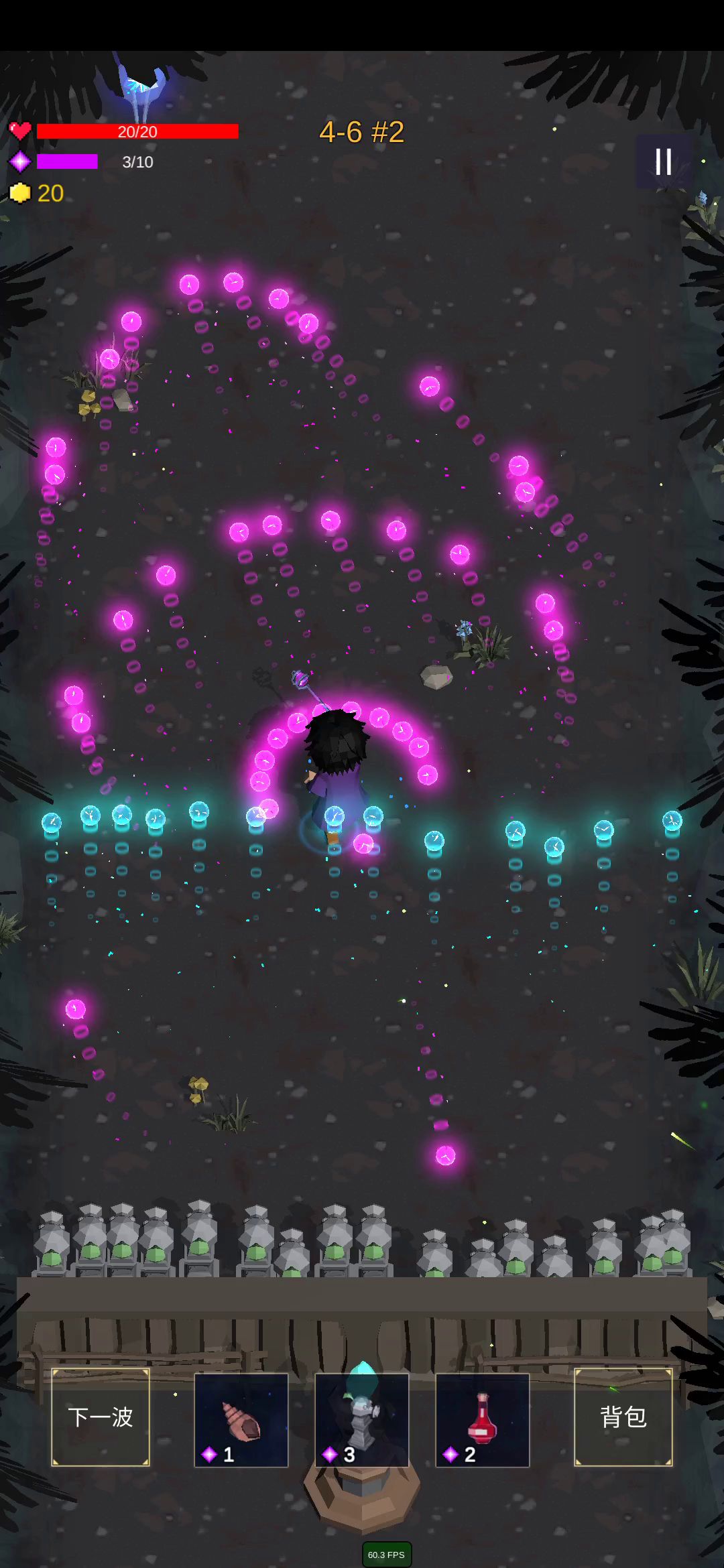 主要是道具,等怪出全了以后扔俩道具就完了,左下角有下一波,注意道具费血还费那个紫的条