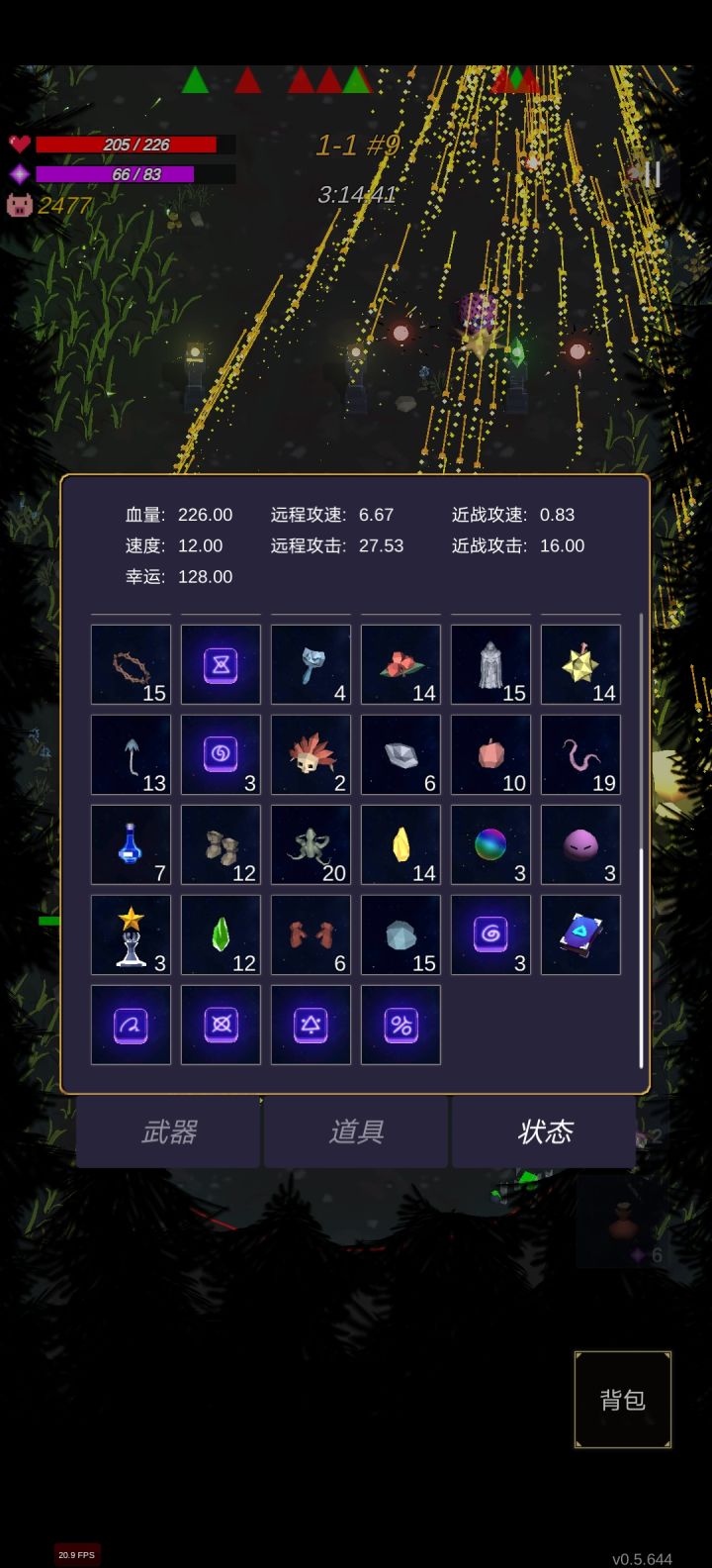 3、技能(魔术帽、随机召唤☆、红、蓝存储瓶)随机召唤可以在传送门时使用,可以刷新出别的传送门,红蓝瓶最高存储32。法师帽可以把不想要的BOSS掉落变换比如森林之心!