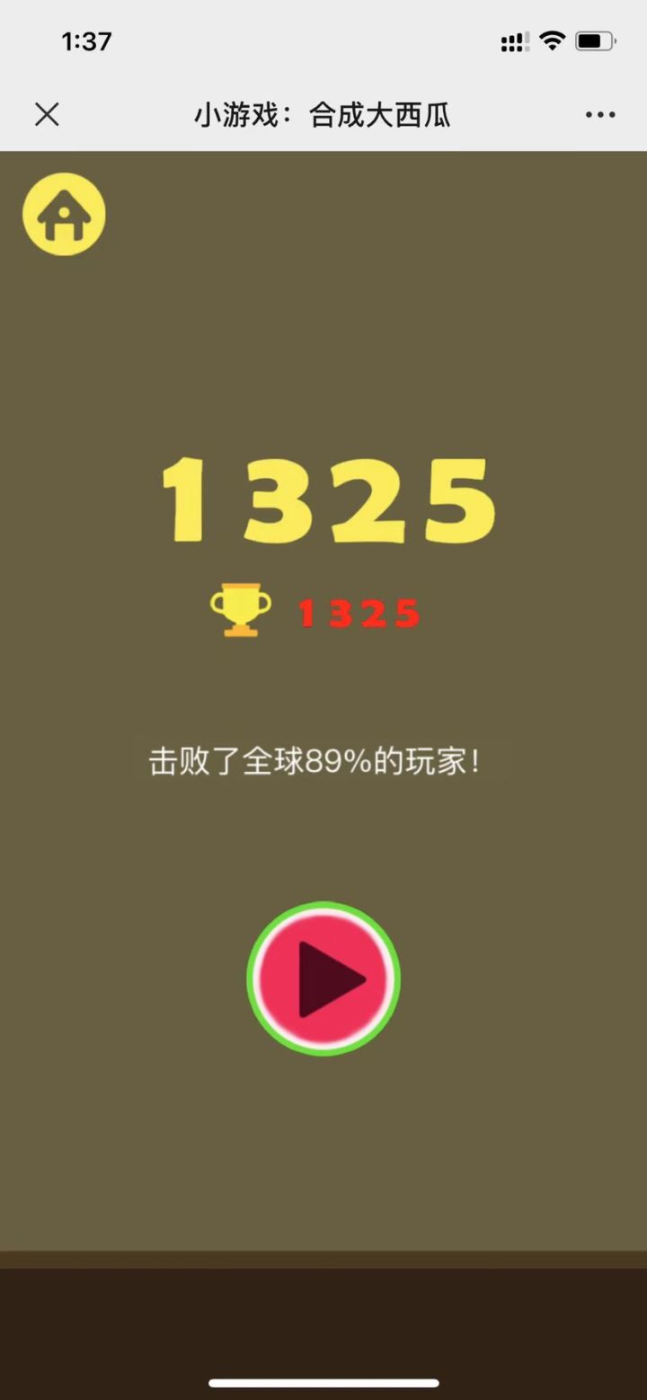 我现在已经看见水果就两眼放光了。尤其是下面这个大西瓜。别问我为什么,问就是因为梓泉这货,如果不是他写这个游戏有毒,我才不会来以身试毒,更不会直接被毒到手机充着电也不肯放下的地步。说实话这游戏上手太简单了,超级容易,而且容易中还有那么一丝小调皮。当然更可恶的是,我已经安利给了我爸我妈我姑我叔……反正我们整个一大家子的群里人,差不多都在玩这个游戏了。现在我们家和亲戚家的日常就是,每天先是拿手机去