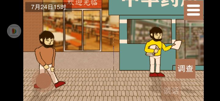 开始和警长的对话(我刚开始卡bug了 他没跟我说命案在哪儿,就是一直说教程),简直说了个寂寞啊喂(口袋放在屏幕上吧,没必要放在菜单里面)。进门也不告诉,这也不说那也不说。直接当场懵逼。