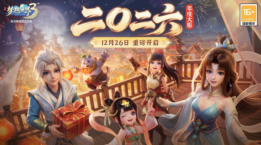 《梦想世界3》手游年度大服“二〇二六”将于12月26日上午10:00开启!大服预约活动现已开启!玩法升级,全新特色玩法上线!新服兑换神兽所需神兽祝福石减少!各色福利活动也将同步上线!首充福利升级,梦想风尚活动开启,还有回归福利、升级礼包、修行进阶抽神兽等新服专属福利活动!在线活跃更有机会获得188888梦想币、仙兽祝福石×2等稀有奖品,快来梦想大陆体验吧! 各位少侠可前往官方论坛新服帖下方留言,与