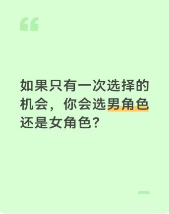 投票如果只有一次选择的机会,你会选男角色还是女角色?
