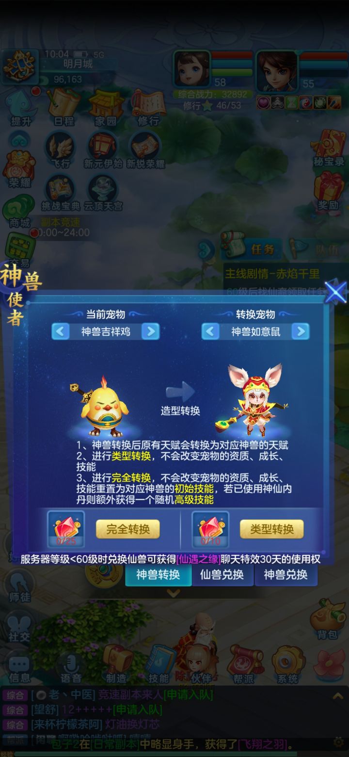 换了神兽鸡几天了,我想要的是鼠,然后想着反正都换了,就在今天花了两天的梦想币十几个W的收入给打了书,然后我突然想起端游在明月神兽使者那可以换成其它神兽,然后我到明月一找神兽使者一看,天塌啦!!!25个神兽魂可以换神兽类型,十几W梦想币够我买一半有多的神兽魂了