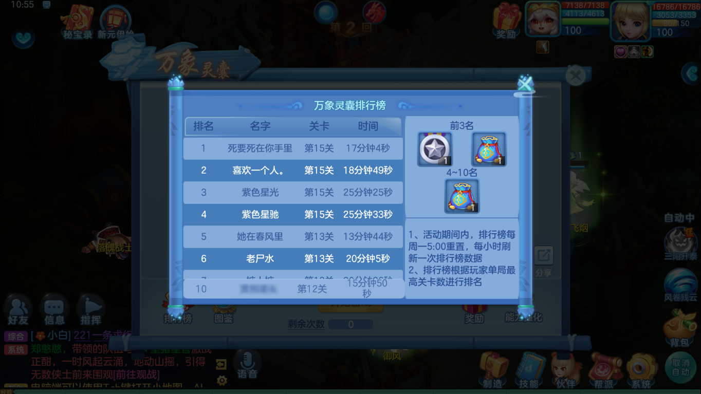 我还以为12关就通关了呢,一看排行榜居然有那么多大佬打到15关了都#梦想世界3#游戏日常