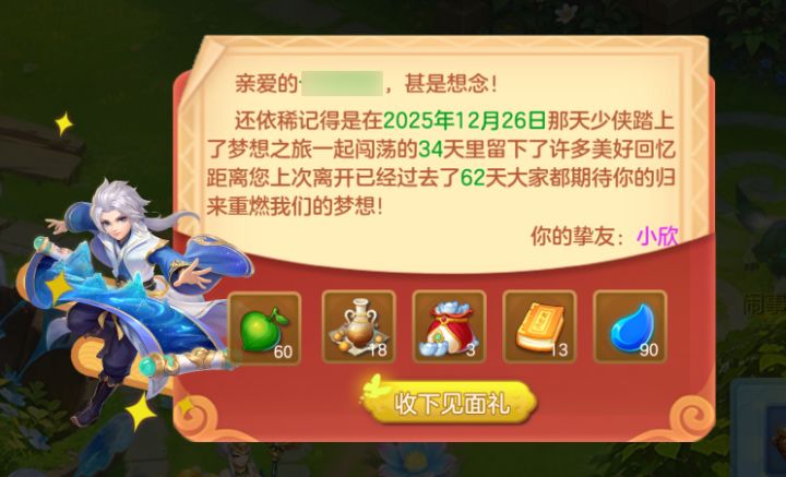清明假期明天就要开始了,最近在游戏里看到有不少小伙伴回坑,估计还有不少小伙伴还在纠结,小白在这里给大家总结了一些回坑小技巧,希望能帮助到大家一、回归福利都有啥?回归的福利整体来看还是不错的,小白有个老区没咋玩的号回去看了一下基本各种经验,道具啥的都会有送,还会有回归活动,完成日活就会给仙兽石,开书的石头啥的(送的都是精品,能换钱的那种!)然后就是洗宠,打书,打装备的一些减负活动了,比如活