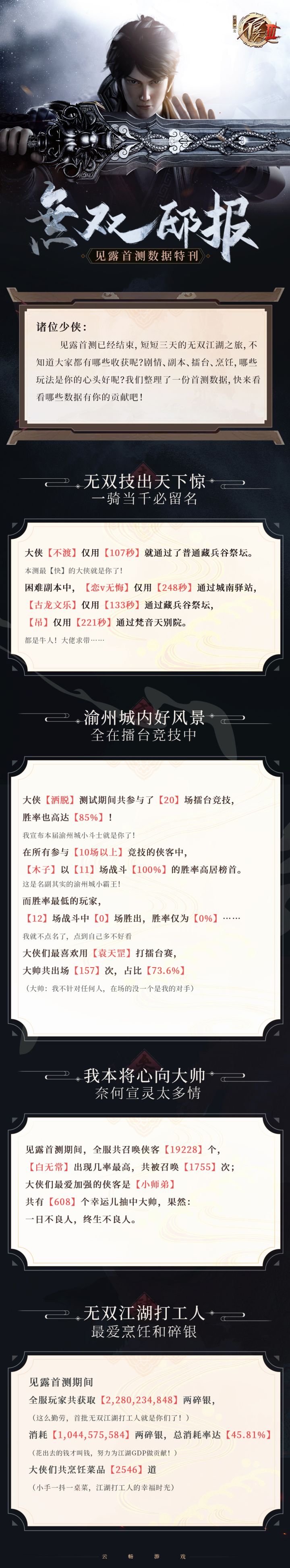 诸位少侠:首先很感谢大家对于《不良人3》首次测试的热情参与,我们将于2月6日1:00关闭服务器,您在本次测试中的游戏数据将被全部清除。在这次过程中我们收到了非常多出色的建议和问题反馈,制作组会稍加整理,并作出认真的考虑。我们将于测试后给少侠们热心的反馈做一次调整方向的公示说明,再次对参与本次测试的少侠们表示最诚挚的谢意!大家等待下次测试的期间,可以加入我们的QQ群进行讨论:①群942860