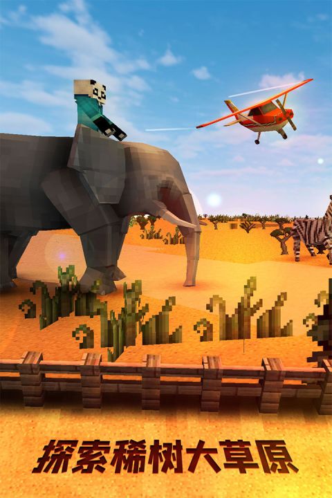 制作和建造方形大草原世界!自由探索的野生大草原!为女孩和男孩准备的小救生筏!带上你的男朋友或女朋友,狩猎一只野生的宠物!