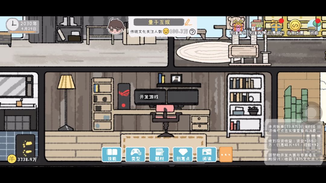 自主开发各种游戏,可以买车买房,模拟游戏开发者的人生!
