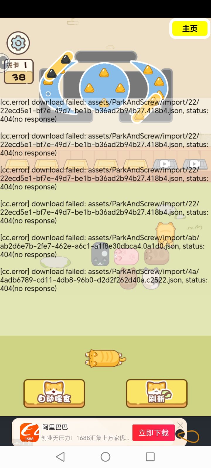 真正让人红温的是那个猫咪😐,我玩了十次以上,都在第二关每次快玩完,只剩几十个一百多个的时候就出现这个报错