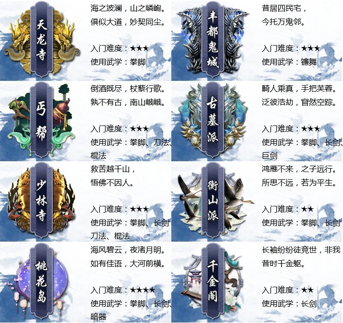 江湖再起波澜,各大门派为夺得武林霸权,纷纷派出最强弟子开展激烈对决。在这刀光剑影的武侠世界里,你从初出茅庐到中流砥柱,从无名小卒到名震江湖,从基础武学到绝世神功,身为本门派佼佼者的你,首当其冲为门派的荣誉而战,挑战各大门派高手,用实力证明谁才是武林霸主。武学指引---剑法攻略 首先提一下总体上剑法的强度:前期入门最丝滑,有古越女的情况直接起飞,中期比较平平无奇,后期成型全面、强势。
