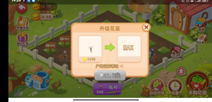 1.16级花苗就是最高了吗?2.任务完成不了。